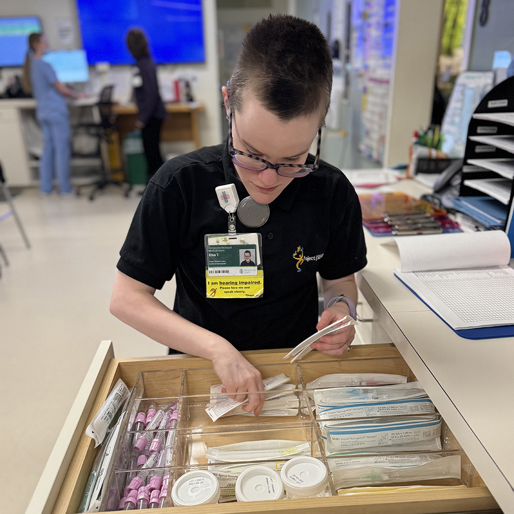 Founded in 1996 at the Cincinnati Children’s Hospital, Project SEARCH is an international program and has over 600 host sites around the world. Since 2011, Dartmouth Hitchcock Medical Center has been a host site for Project SEARCH, with 50+ individuals successfully completing the program.